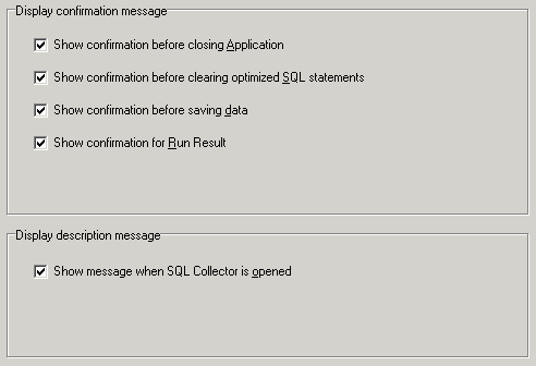 Show message when SQL Collector is opened (Default = checked)