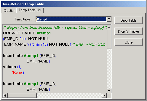 After the user-defined temporary tables are created, you can view the SQL scripts used to create and populate the tables.