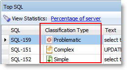 Find SQL also conveniently groups the collected SQL statements into SQL Classification categories (problematic, complex, simple, and invalid).
