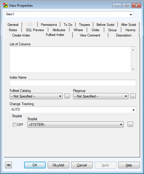 • Stoplists - Similarly to Filegroups, Stoplists work in Toad Data Modeler only as a list. During script generation, the Stoplist definition is not generated and during reverse engineering  the definition is not loaded either (only names are loaded).