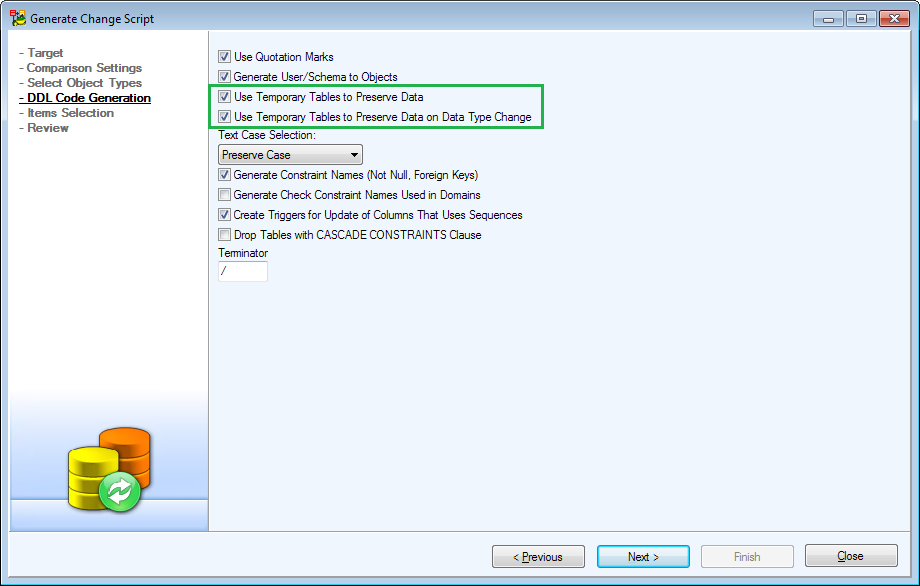 • Change Script generation- Use Temporary Tables options are now available for all Oracle Databases in Settings and in Change Script generator.