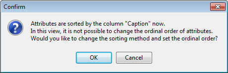 If you sort attributes this way, you cannot manually change order of attributes via the green arrows. If you click a green arrow, this message will display: