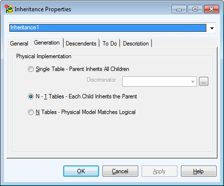 • Edit the inheritance in Model Explorer | Inheritances folder | double-click the selected inheritance (or right-click | Edit).