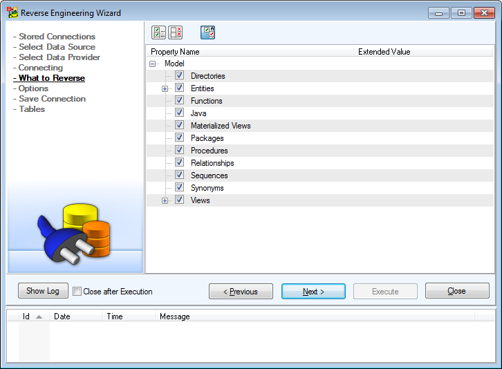 • Reverse Engineering Wizard and Model Update Wizard - What to Reverse page