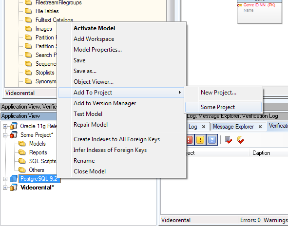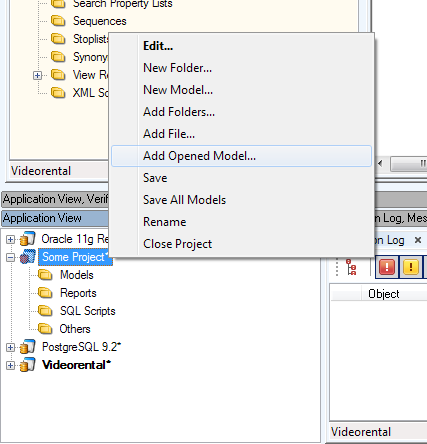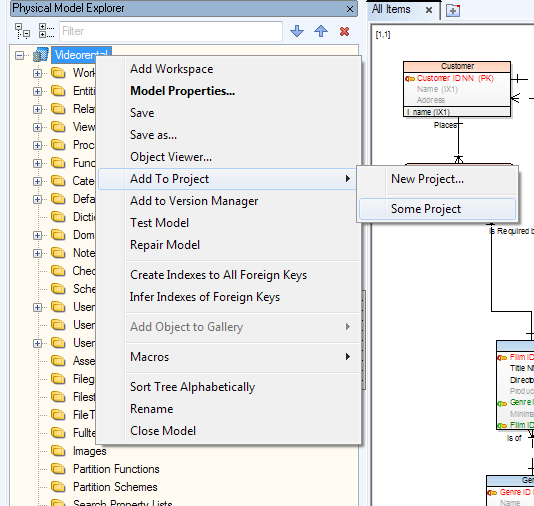 • In Application View or Model Explorer right-click a model and select Add to Project | *Project Name*.
