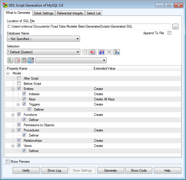 During reverse engineering, the Definer property is loaded. Nevertheless, if user does not have particular permissions, the generated DDL script with the Definer property would not work. Now it is possible to deselect this property for the DDL script generation.