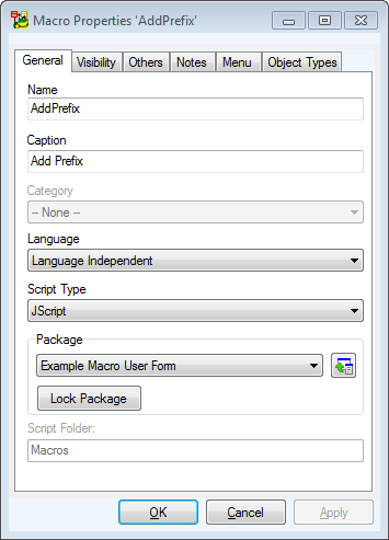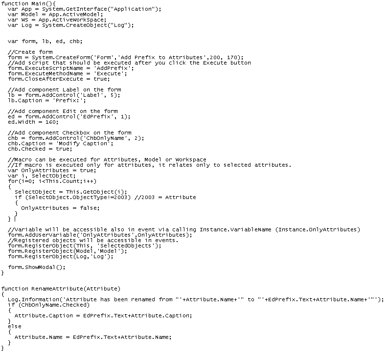 Solution: You will create a macro Add Prefix. The macro will be available via right-click menu on the Workspace. You want to create a user form where you will define the prefix and decide if you want to apply the change in Caption of attributes too. |