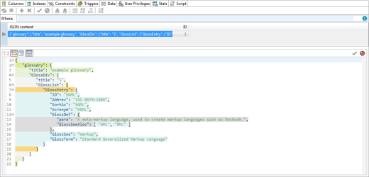 • JSON columns, usable in MySQL 5.7 and newer, can be easily viewed in Object Explorer even when they are nested