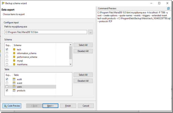 • You can create backups of your database/schema using SQL provider-specific binaries like mysqldump, pg_dump etc. via Toad Edge user friendly wizards. These binaries will create backup files. You can also restore your database/schema using these generated backup files.