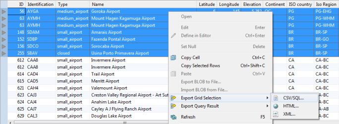 • Export your entire table, selected rows or even query results to the universally used CSV format file