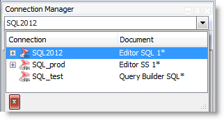 • If there are multiple open documents associated with a connection, the documents are listed under the connection node. Expand the node to display the list.