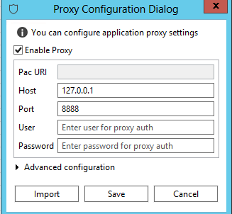 2) Click Enable Proxy and input 127.0.0.1 for Host and 8888 for Port and Click Save.