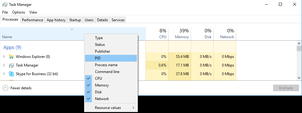 Then you can go into the windows task manager and add a field for Process Page Columns or PID