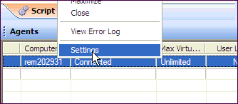 2. Right-click the agent in the Agent pane of the Benchmark Factory Console and select Settings.