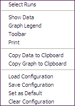 To modify a graph view, right-click a Benchmark Factory graph to display a drop-down list that allows you to customize graph settings. Whether you are viewing a real-time graph or one in Benchmark Factory Run Reports, Benchmark Factory uses the same graphing tool. In most cases you will find that the graphs are presented in the most meaningful form (Line Graphs or Bar Graphs based on the data being presented.)