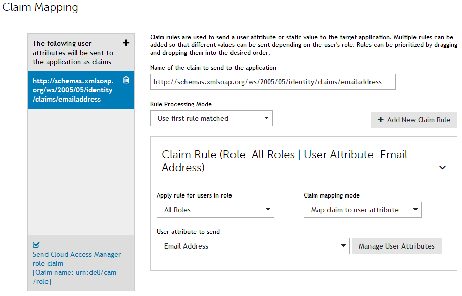 On the Claim Mapping page you can configure the values Cloud Access Manager will pass to SharePoint in the form of claims. By default only a user’s email address is required to successfully authenticate. If you need to pass other values, for example employee id, you can add further claims on the Claim Mapping page and populate them with the appropriate values from the relevant front-end authenticator.