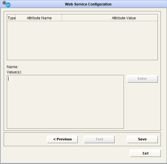 Pressing the  button will store all the entered parameters for the web service adapter in the DT database.