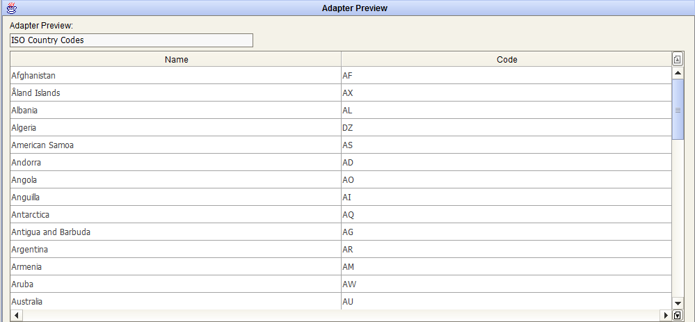 this means that user may choose the parameter value from a list of available items. In case of this example, with the double-click on the lens icon, a table appears, with the available encoding: