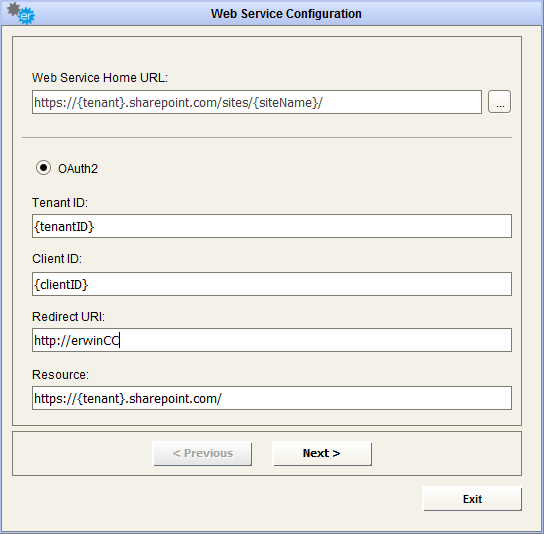 To provide required parameters, please ensure that erwin DT is registered on target tenant Azure Active Directory.