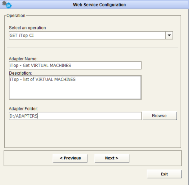 2.Pressing the  button the user steps into the next window that shows the available operation of that Web Service, which is in this case “GET iTop CI”, allowing users to query all items of a given class (selected in the next window) into the CMDB.