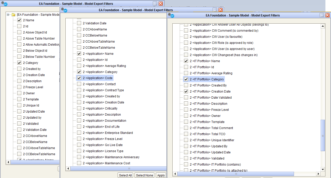 It’s also possible to choose which Properties/Associations extract through an EA Adapter for the selected object type. The “Source Filters” button allow user to pick only the desired information from a model, while default operation includes all of them.