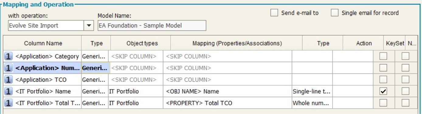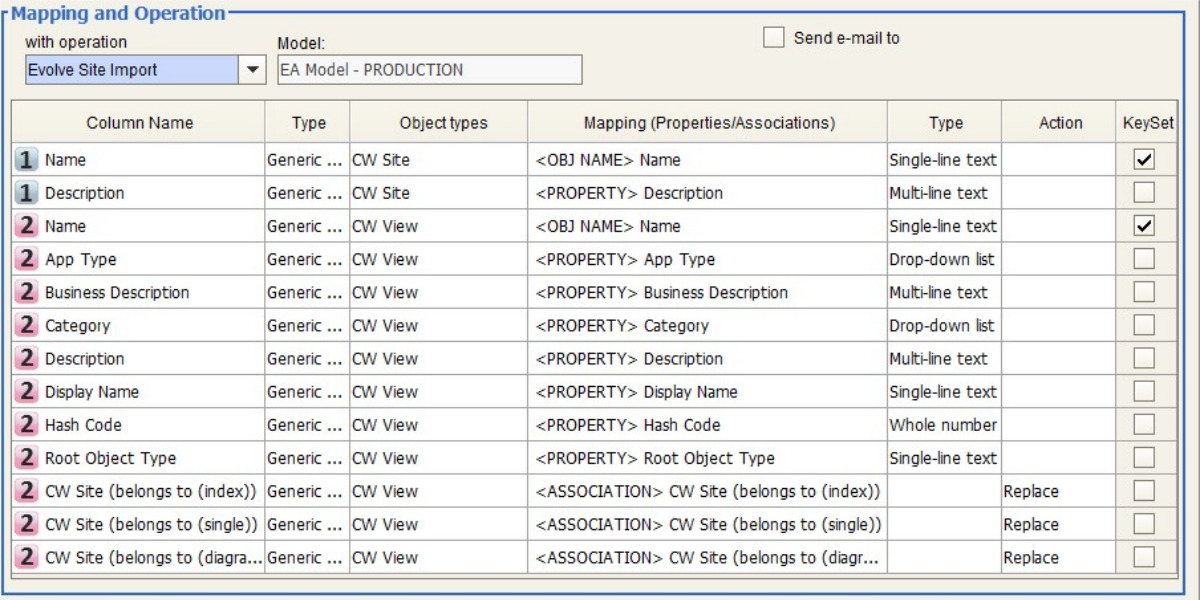 8. Choose the operation Evolve Site Import that will automatically map all needed fields