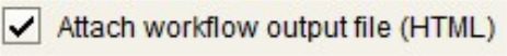 The workflow output, in HTML format, will be attached to email. If it is not needed – for example, the workflow is configured to produce a file that will be also attached to email – the option “Attach workflow output file” should be deselected: