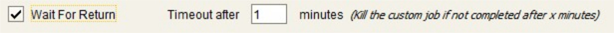 DTWhen “Wait For Return” is not checked, user may define a number of minutes that DT will wait before scheduling the next job, if the custom job is included in a job sequence.