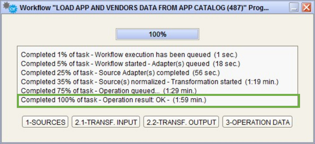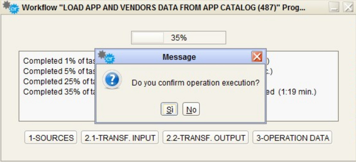 At the end of workflow transformation if operation data is available and ready, the user may choose whether to execute the operation or not: