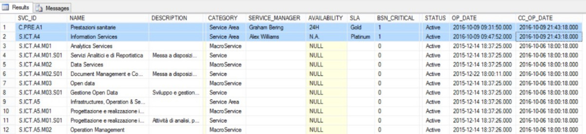 a Service Catalogue manages enterprise services data, stored in a MS SQL database table. The service table identifies the item with a “COD_APPLICATION” field, which is differentiated by the Erwin ID of the model for the same item: