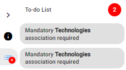 2.Click the pending task. For example, “Mandatory Technologies association required”.