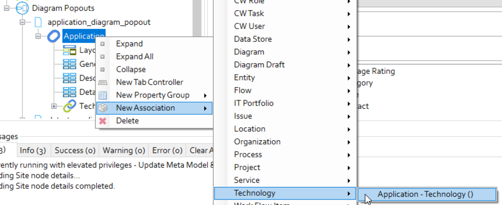 5.Right-click Application and click New Association > Technology > Application – Technology ().