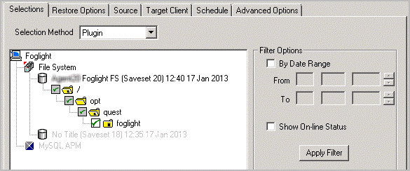 Expand the branch and ensure /opt/quest/foglight is selected. |
