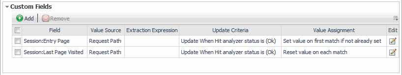 Details—Analyzers can update custom fields using data that is already associated with a hit, sequence, or session. For example, you can update a custom field with a Request Header value. The type of details available to an analyzer changes depending on the type of analyzer.