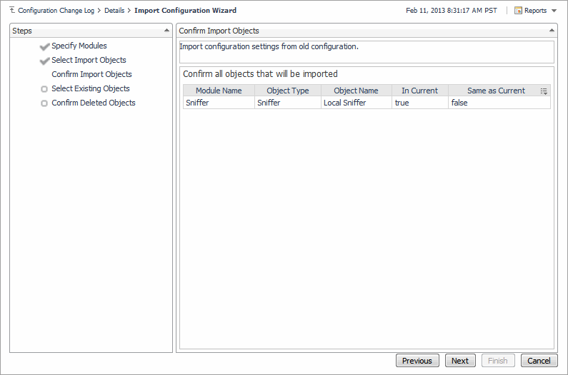 NOTE: If no modules were set to Import Selected Objects, this screen is empty. Click Next.