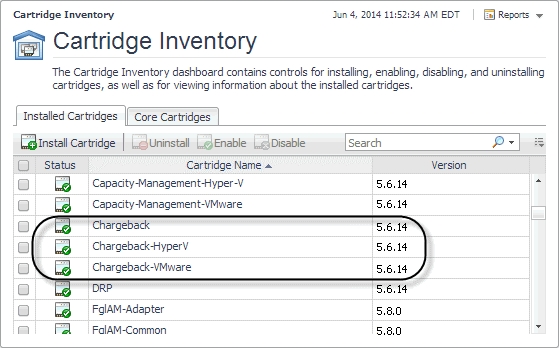 Start by installing the .car file containing Foglight Chargeback using the Cartridge Inventory dashboard. The cartridge must be enabled to make use of cost models and to generate reports. For complete information about installing and enabling cartridges on the Foglight Management Server, see the Administration and Configuration Help.