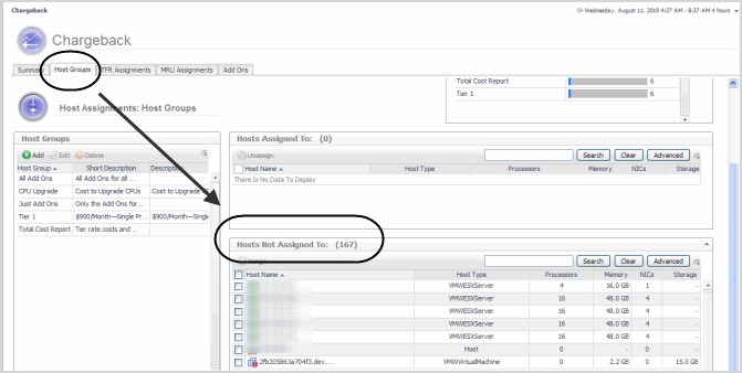 Any monitored hosts appear in the Chargeback Host Not Assigned To view. No further setup is required to gather data and build chargeback reports.