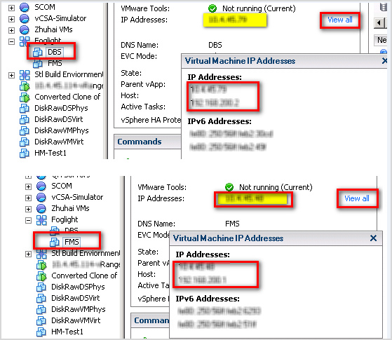 If DHCP is enabled, you should see IPs in your range assigned to the FMS and DBS VMs. If you have these IPs, open a web browser to http://<FMS IPaddress> and log in using the user name foglight and password foglight_admin_password_placeholder.