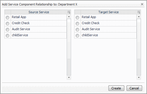 Click the Add icon, set the source and target relationship by selecting the Source Service and Target Service.