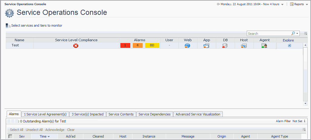 The Service Operations Console dashboard is the best way to monitor a selected set of services. Use it to tailor the way Quest Foglight presents information about monitored components so that it suits your specific needs.