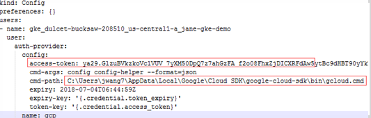 NOTE: This Kubernetes configuration file cannot be used as the agent credential because the token in this file will get expired soon and “cmd-path” of the token directs to your local platform. |