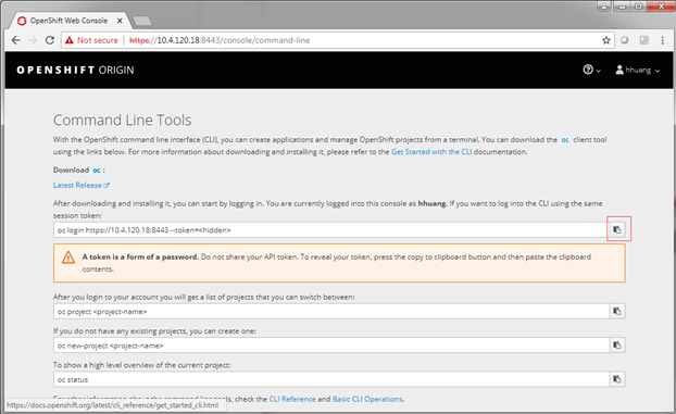 After logging into Openshift, click Command Line Tools on the upper right. |