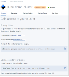 If you have created your cluster on IBM Cloud Kubernetes Service, get the access from the console as described on the cluster’s Access view. You will get a .pem file and a .yml file after you performing the steps.