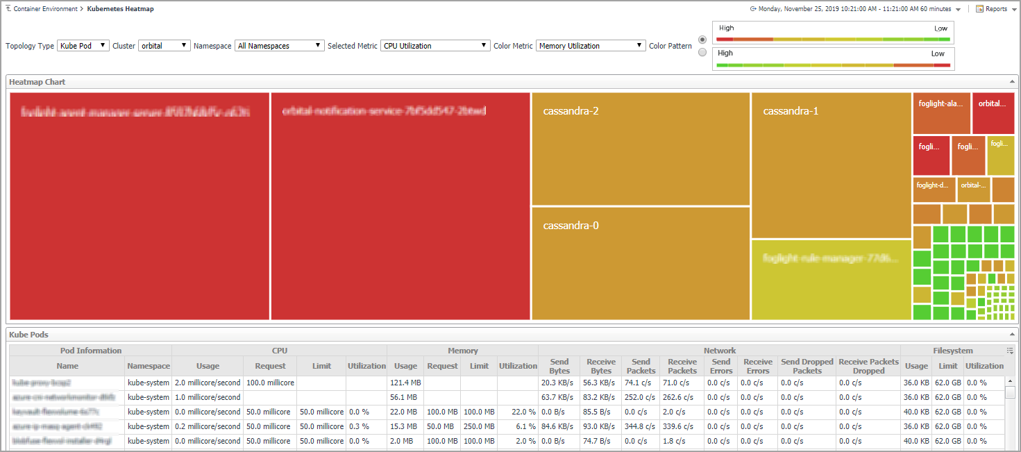 Figure 49 shows an example of heat map. Clicking the object name on the heat map directs you to the relevant object Explorer dashboard. For more information, see: