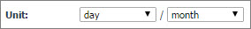 For example, to set the unit o the derived metric to a number of days per month, click the left Unit box, and select day from the list that appears, then click the right Unit box and select month, as illustrated bellow.