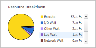 Resource Breakdown Pie chart — Displays the resource breakdown usage by % of the total database (or Partition) activity.