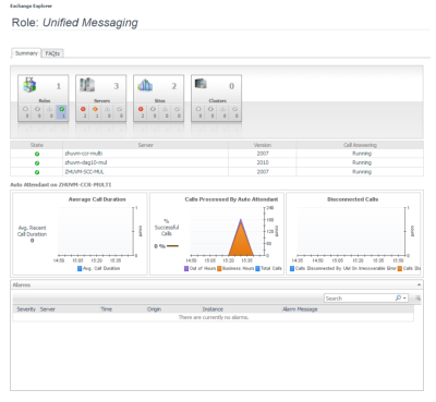 The Unified Messaging Role Summary view displays more detailed metrics about the selected Unified Messaging role.