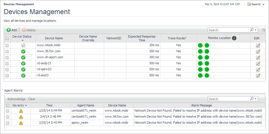 For complete details about the views appearing on this dashboard, see Net Monitor Devices Management views.