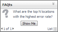 The FAQts view shows answers to common questions related to your transactions or locations. The collection of available questions depends on the tile selected in the Web Monitor Environment view. If you select the Transaction tile, this view displays the questions related to your transactions. If you select the Locations tile. the view displays the questions related to your locations.