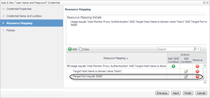 To get started, create a new credential of the User Name and Password type containing a resource mapping with the Web Monitor Proxy Authentication usage. Next, specify the host name or IP address of the proxy server and the port number, and save your changes.